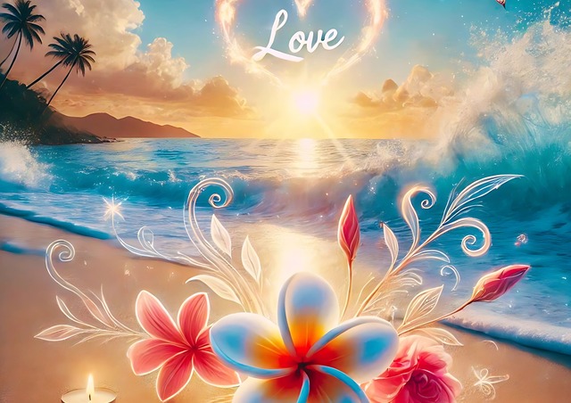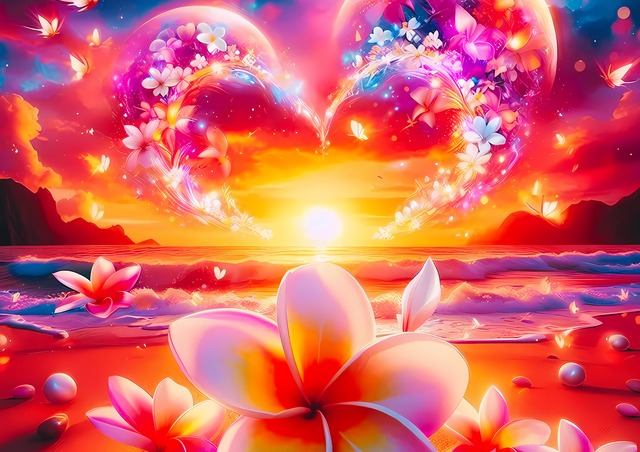 ビーチ&プルメリアトロピカルアート AIで作成しました。 サイズ 2000×1414px A4 PNG